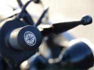 Читать далее >>Образца 1976 г. Пневмогидравлическая передняя вилка заряжается сжатым газом через вентиль (справа). Одинаковое давление в ее перьях поддерживается благодаря соединительной трубке. Сжатый газ обеспечивает более выгодные характеристики подвески, чем пружины. Веерное расположение ребер головки создает условия для равномерного охлаждения. Тщательно подобранные конфигурация и объем выпускной трубы обеспечивают выигрыш в мощности. Цилиндр прикреплен к картеру четырьмя короткими шпильками, а головка к цилиндру — пятью. Необходимое во время работы натяжение цепи создается резиновым подпружиненным роликом. Рядом с ним видна алюминиевая реактивная тяга тормоза заднего колеса. Кронштейн для крепления двигателя может поворачиваться на оси задней вилки. Маятниковая вилка упирается в пружинно-гидравлический амортизатор, соединенный с головкой рамы. Ведомая звездочка, свободно сидящая на ступице колеса, передает усилие через пружины. Первый дорож...