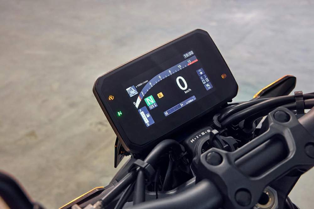 Версия SP получила ещё более впечатляющую динамику. Благодаря перенастройке блока управления двигателем (ECU) и использованию более производительной 4-в-2-в-1 выхлопной системы с управляемым клапаном, мощность была поднята до 155-157 лошадиных сил, а крутящий момент — до 107 Нм. Для обеспечения плавного и точного управления всей этой мощью используется система электронной ручки газа (Throttle By Wire, или TBW). Она же отвечает за работу систем помощи водителю: доступны три предустановленных режима езды (Rain, Standard, Sport) и два полностью настраиваемых USER-режима, в которых можно индивидуально отрегулировать три ключевых параметра: отдачу двигателя (P, доступны 3 уровня), уровень торможения двигателем (EB, 3 уровня) и чувствительность системы выборочного контроля крутящего момента Honda (HSTC) с интегрированной защитой от подъёма переднего колеса (Wheelie Control), которая имеет четыре уровня вмешательства (плюс полное отключение). Система HSTC встроена в электронику двигателя и не использует данные об угле наклона от IMU (инерциального измерительного блока), что делает её более простой и предсказуемой, хотя и менее продвинутой по сравнению с топовыми системами.